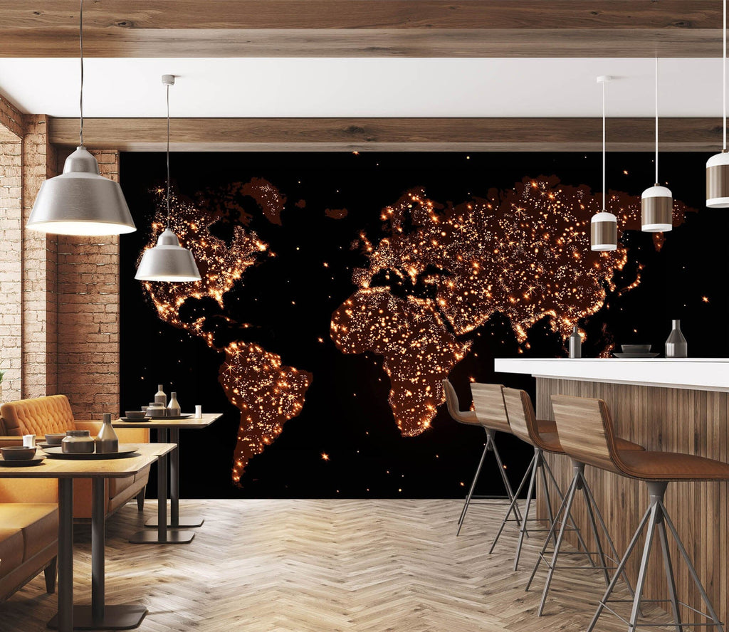3D Golden Lights 2054 World Map Wall Murals Dai