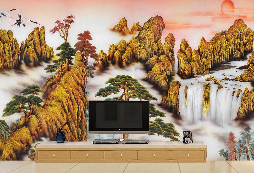 3D Golden Mountain WC122 Wall Murals Zoe