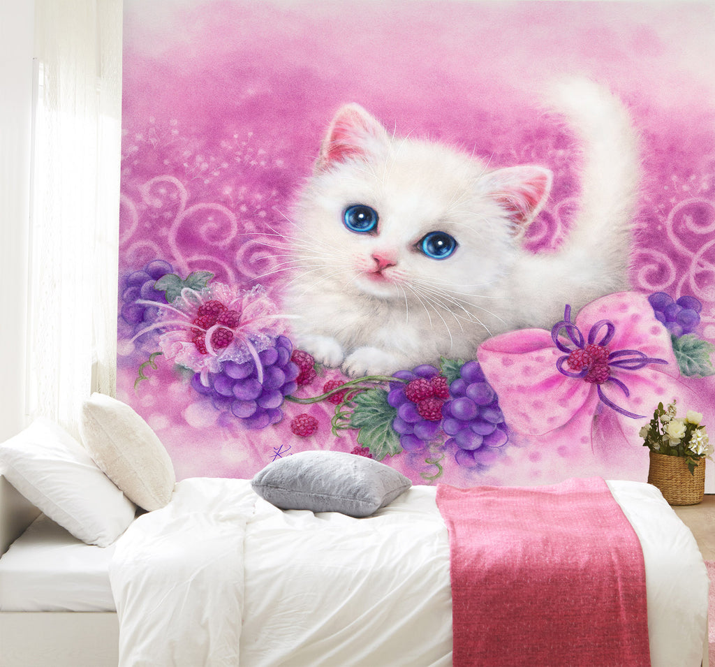 3D Grape White Cat 5438 Kayomi Harai Wall Mural Wall Murals Amy