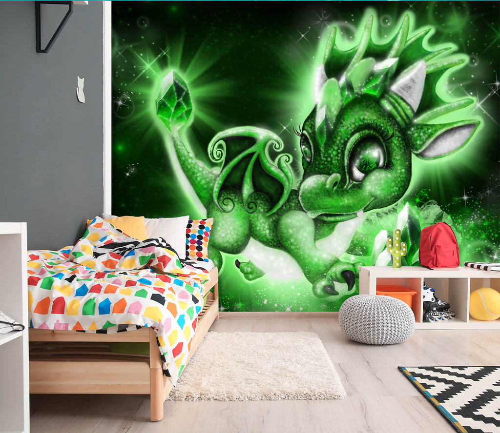 3D Green Crystal Dragon 8408 Sheena Pike Wall Mural Wall Murals Amy
