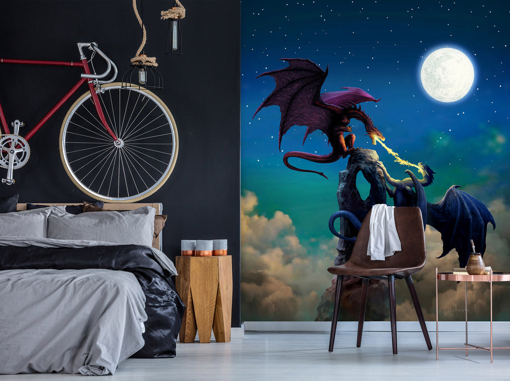 3D Night Moon Dragon 7148 Ciruelo Wall Mural Wall Murals Sinsin