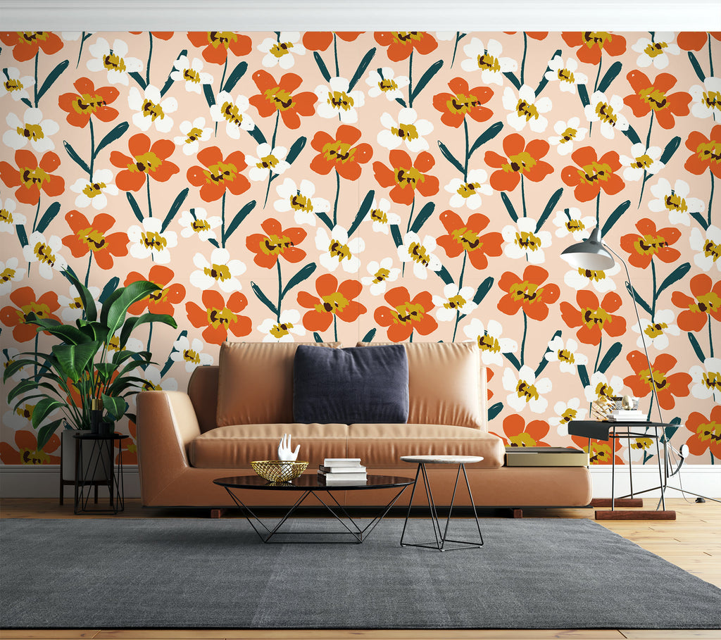3D Orange Flowers 12049 Kashmira Jayaprakash Wall Mural Wall Murals