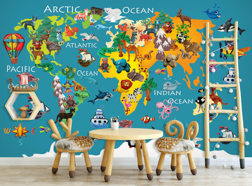 3D Painted Animals 2117 World Map Wall Murals Dai