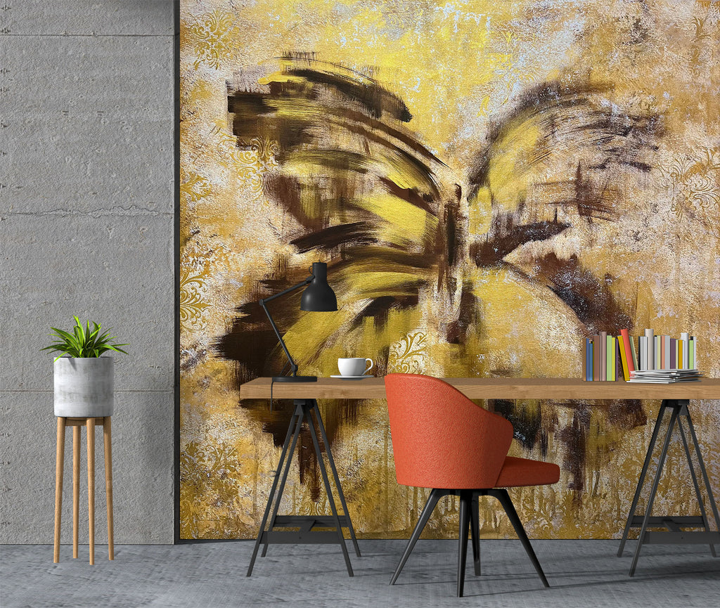This painted yellow butterfly mural is a cheerful and playful option for any room. The bright and bold colors add a pop of energy and liveliness, making it ideal for children's rooms or play areas.