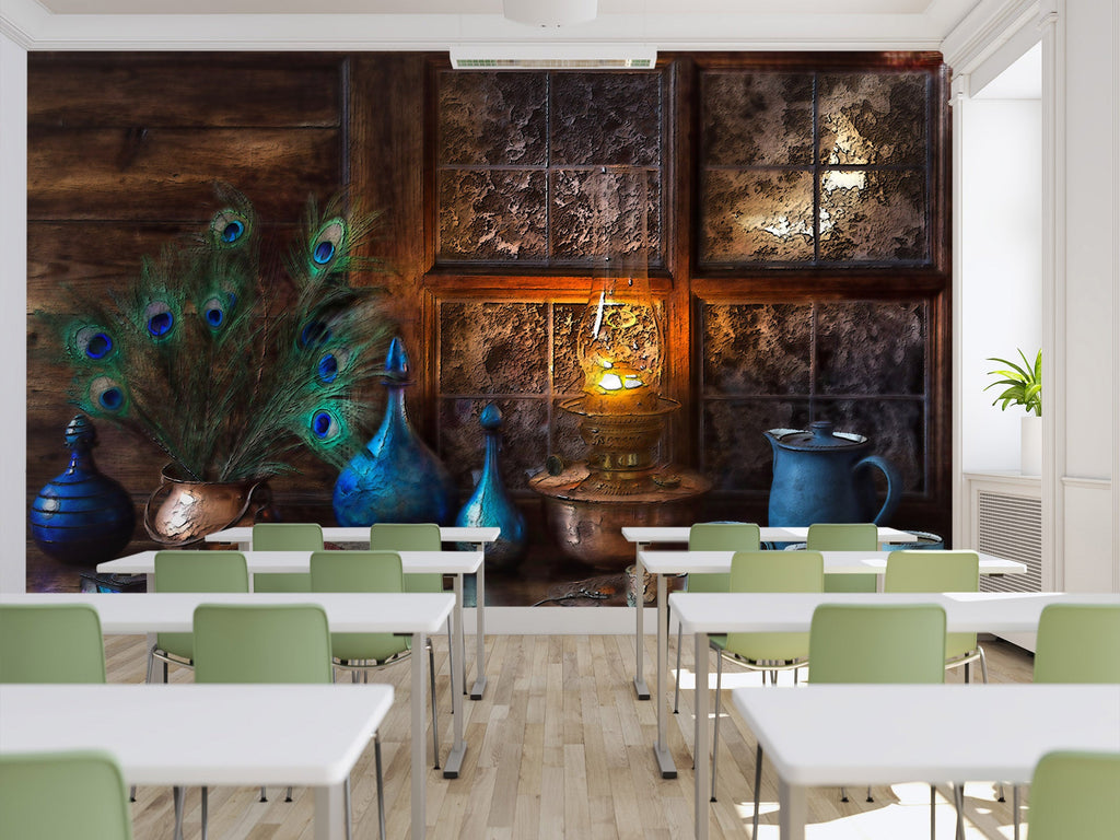 3D peacock feathers with lights 06 Wall Murals