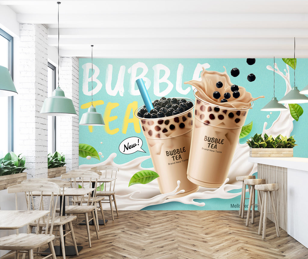 3D Pearl Tea 2049 Fruit Bubble Tea Milk Tea Shop Wall Murals Amy