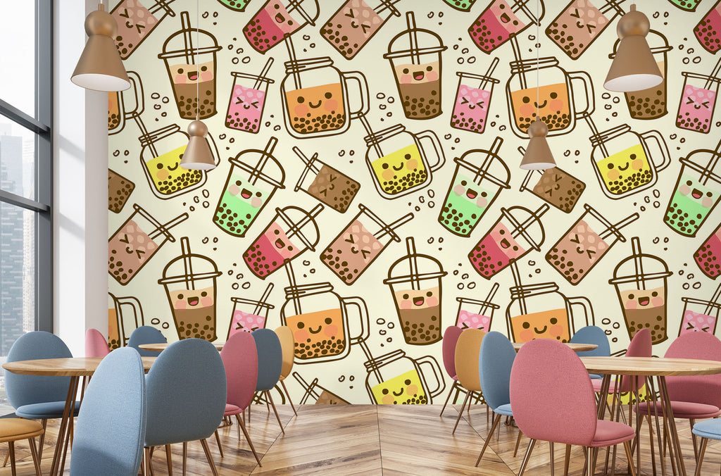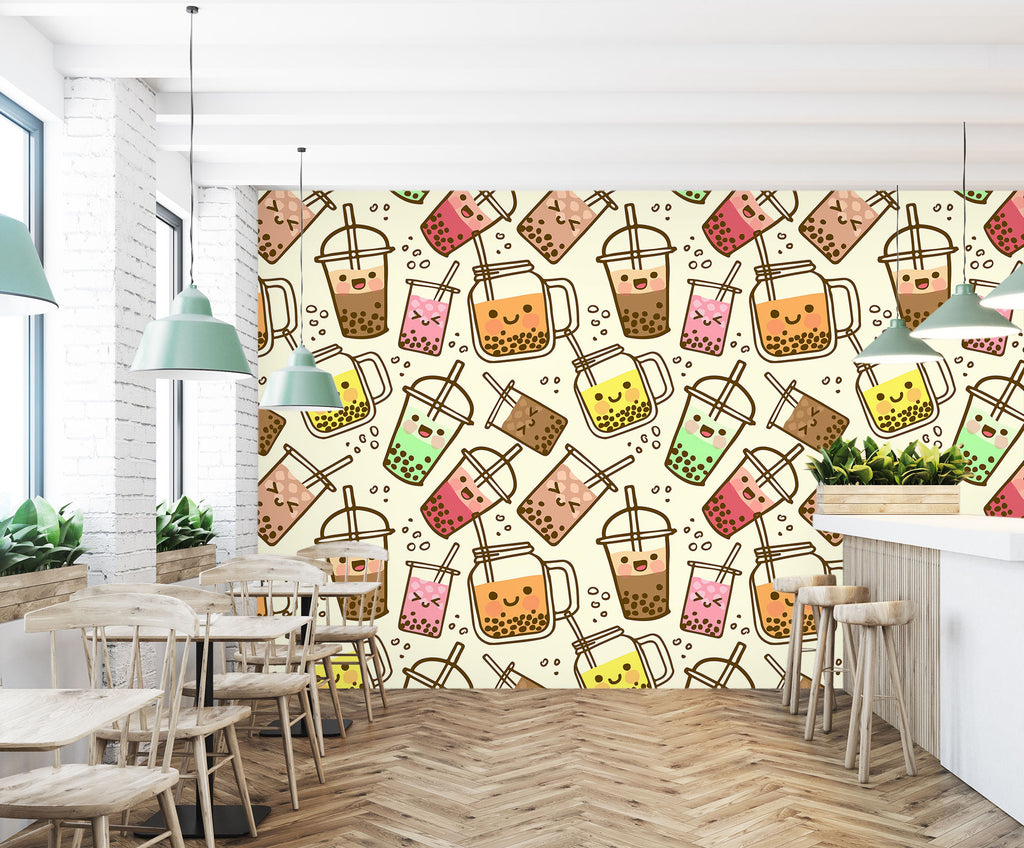 3D Pearl Tea 2053 Fruit Bubble Tea Milk Tea Shop Wall Murals Amy