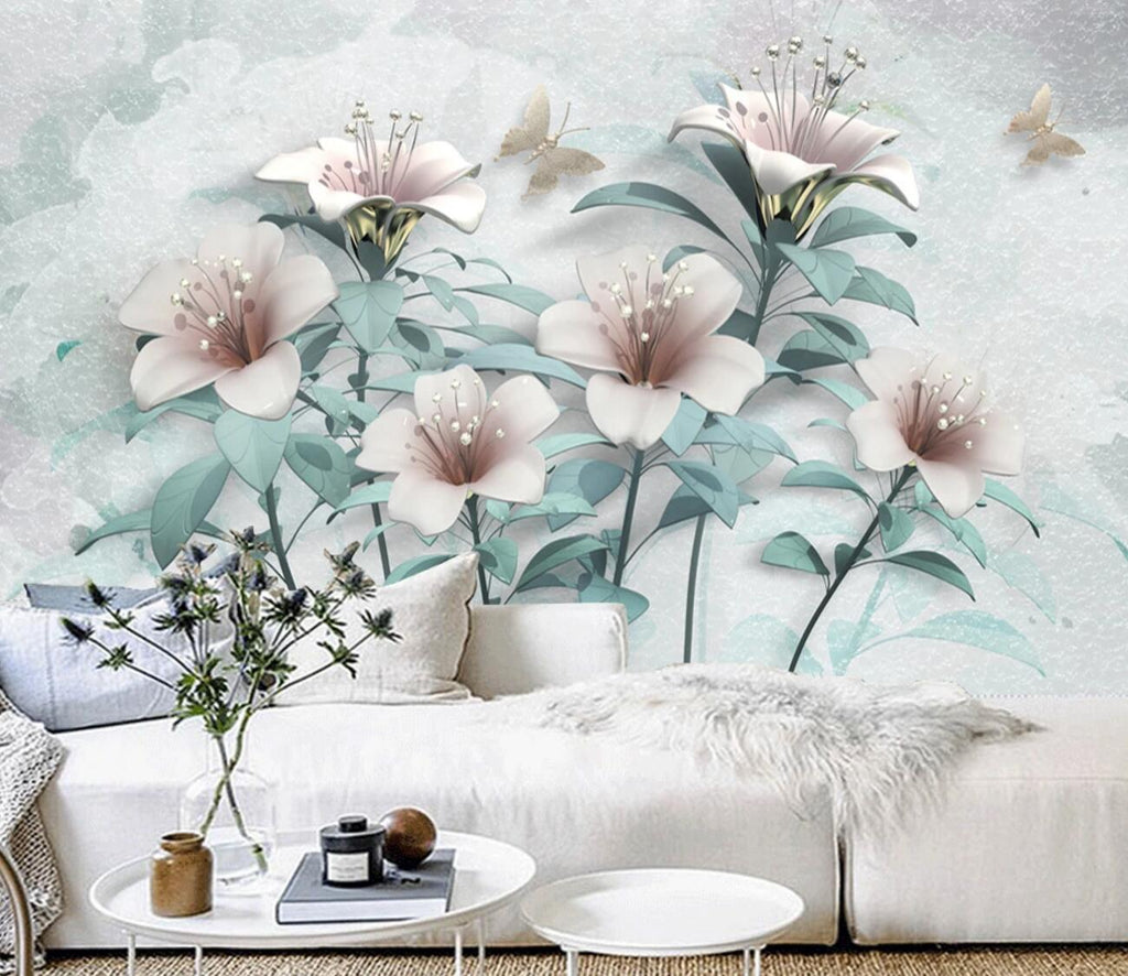 3D Pink Lily Butterfly WC2723 Wall Murals Zoe