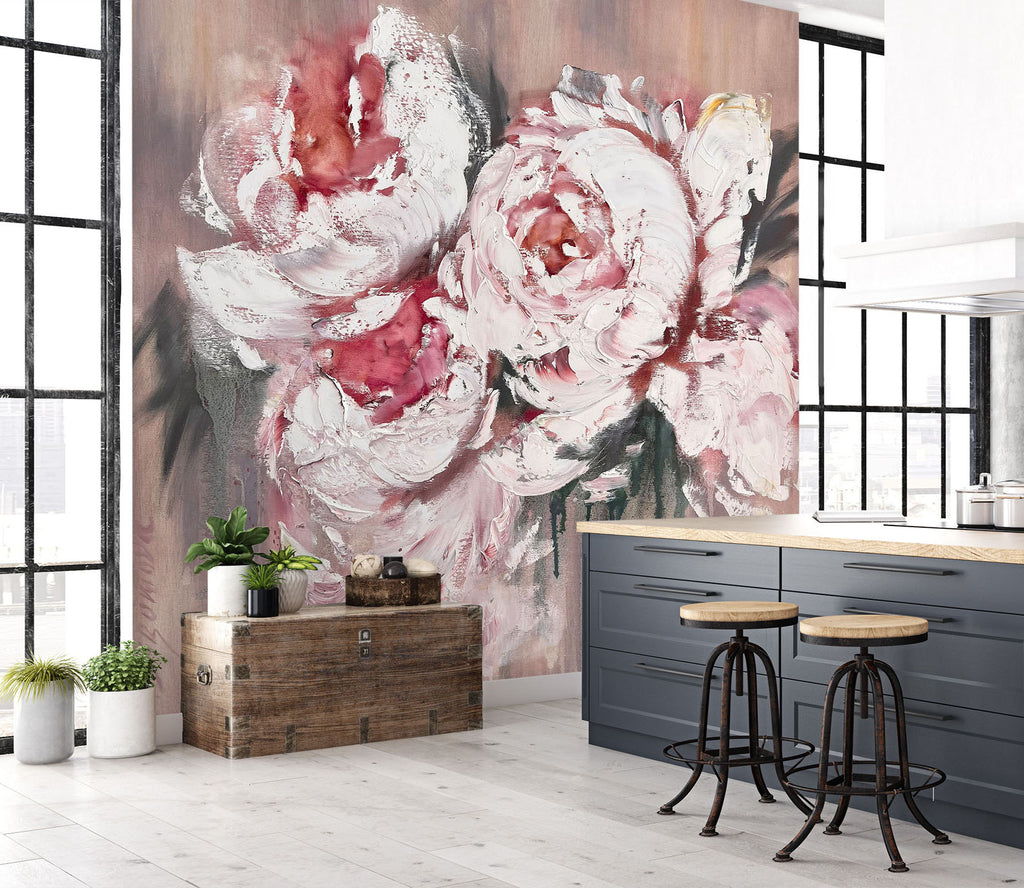 3D Pink Painted Flowers 3105 Skromova Marina Wall Mural Wall Murals Amy