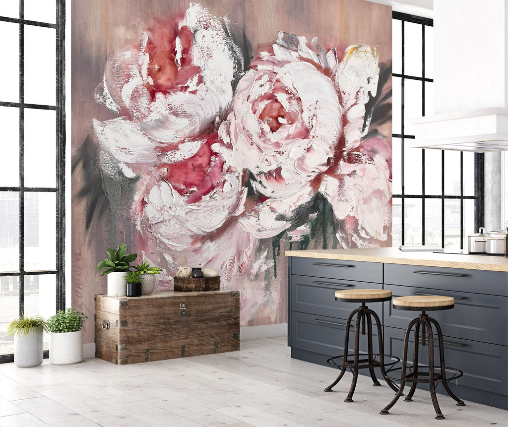This pink painted floral art mural is perfect for creating a feminine and charming atmosphere in any room. The mural features delicate pink flowers and green leaves that evoke a sense of calm and tranquility.