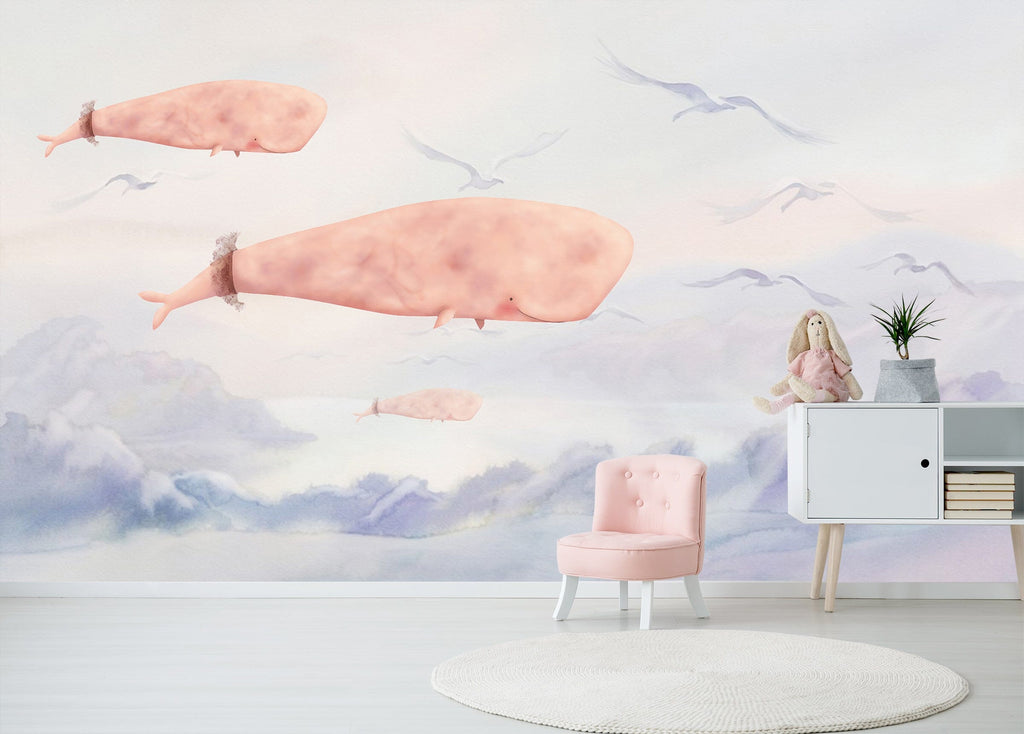 3D Pink Whale 1431 Wall Murals