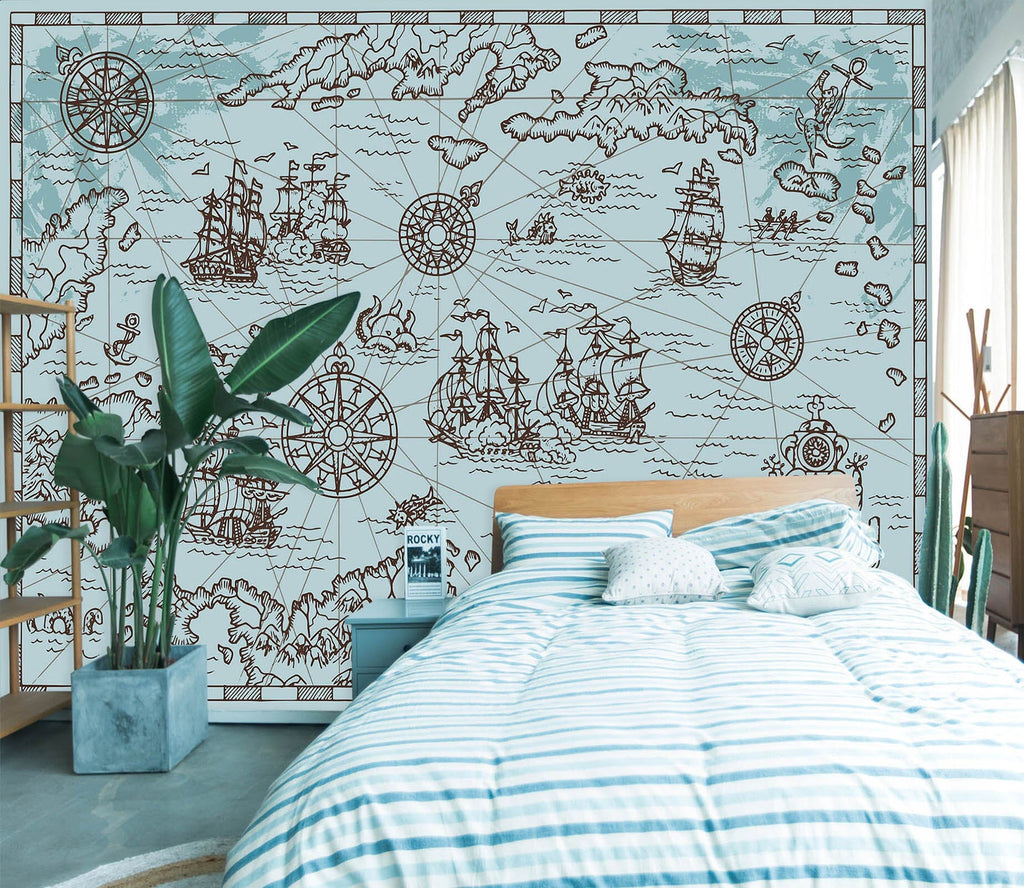 3D Sea Boat 2127 World Map Wall Murals