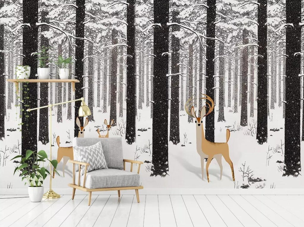 3D Snow Forest Deer WC476 Wall Murals Zoe