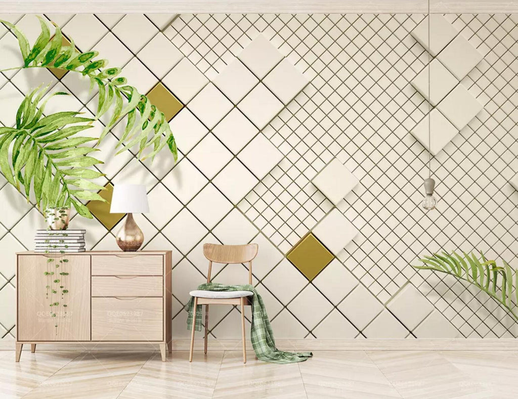 3D Square Brick Leaves WC636 Wall Murals Zoe