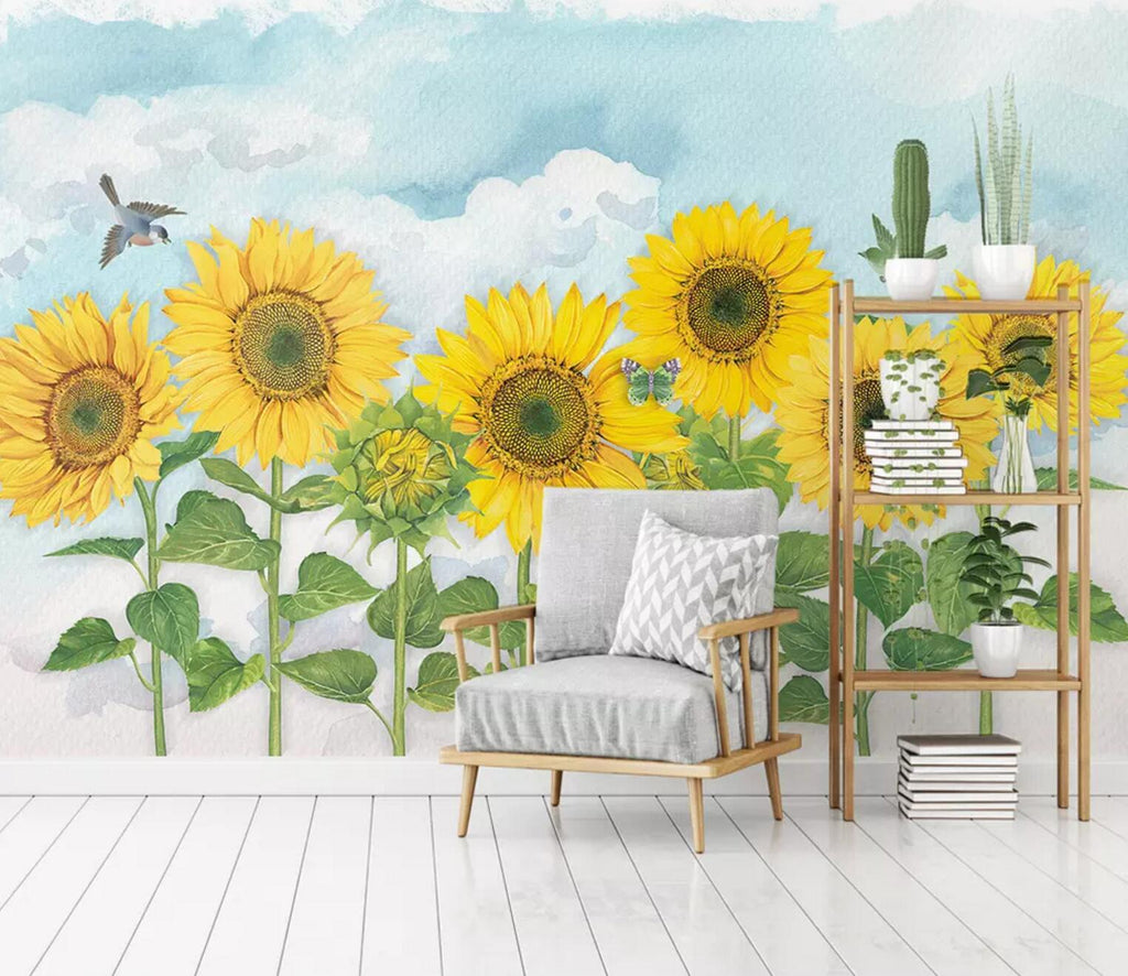 3D Sunflower Bird WC610 Wall Murals Zoe