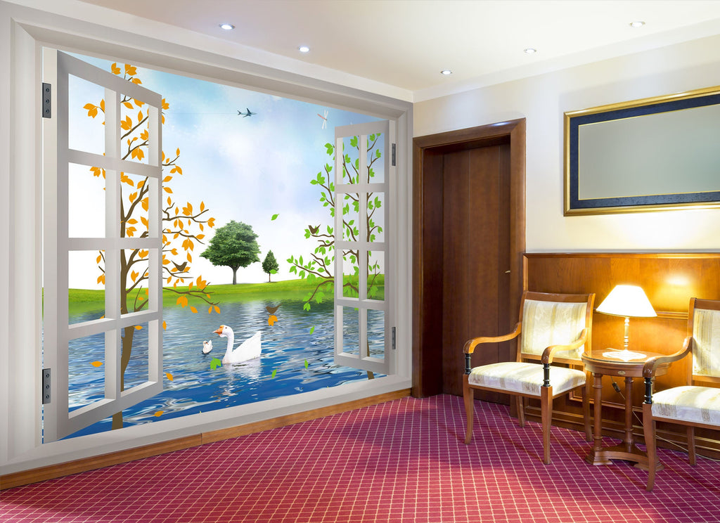 3D Swan Window Lake 48 Wall Murals Zoe