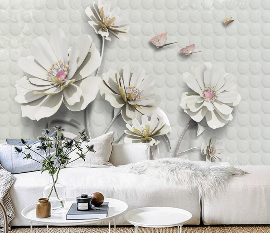 3D White Flower Butterfly WC2050 Wall Murals Zoe