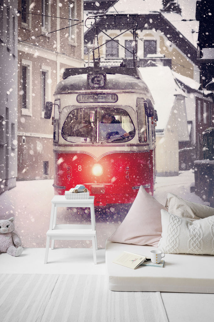 3D White Snow Bus 436 Vehicle Wall Murals Zoe