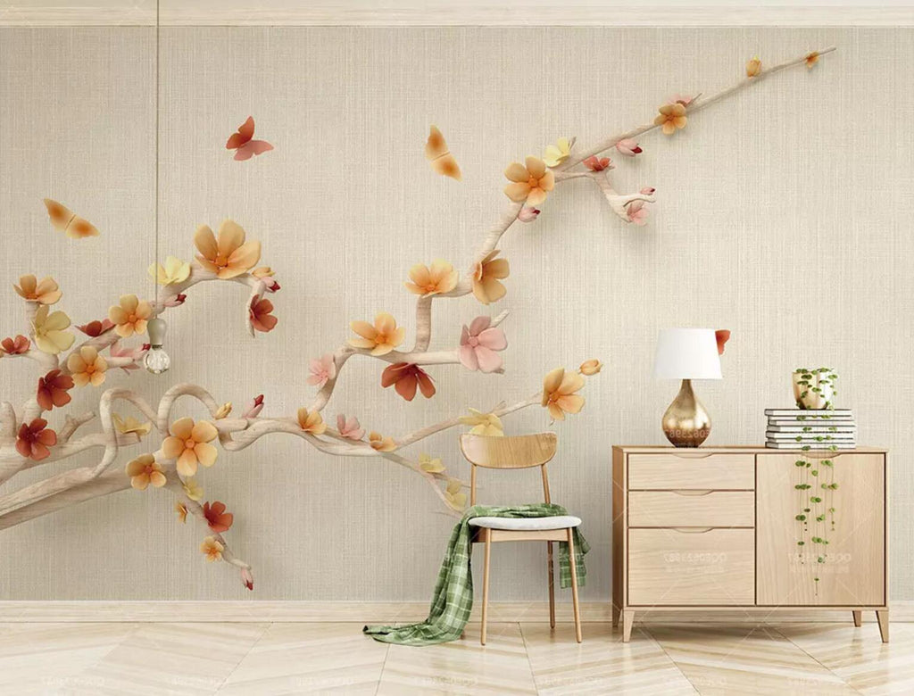 3D Yellow Plum Butterfly WC673 Wall Murals Zoe