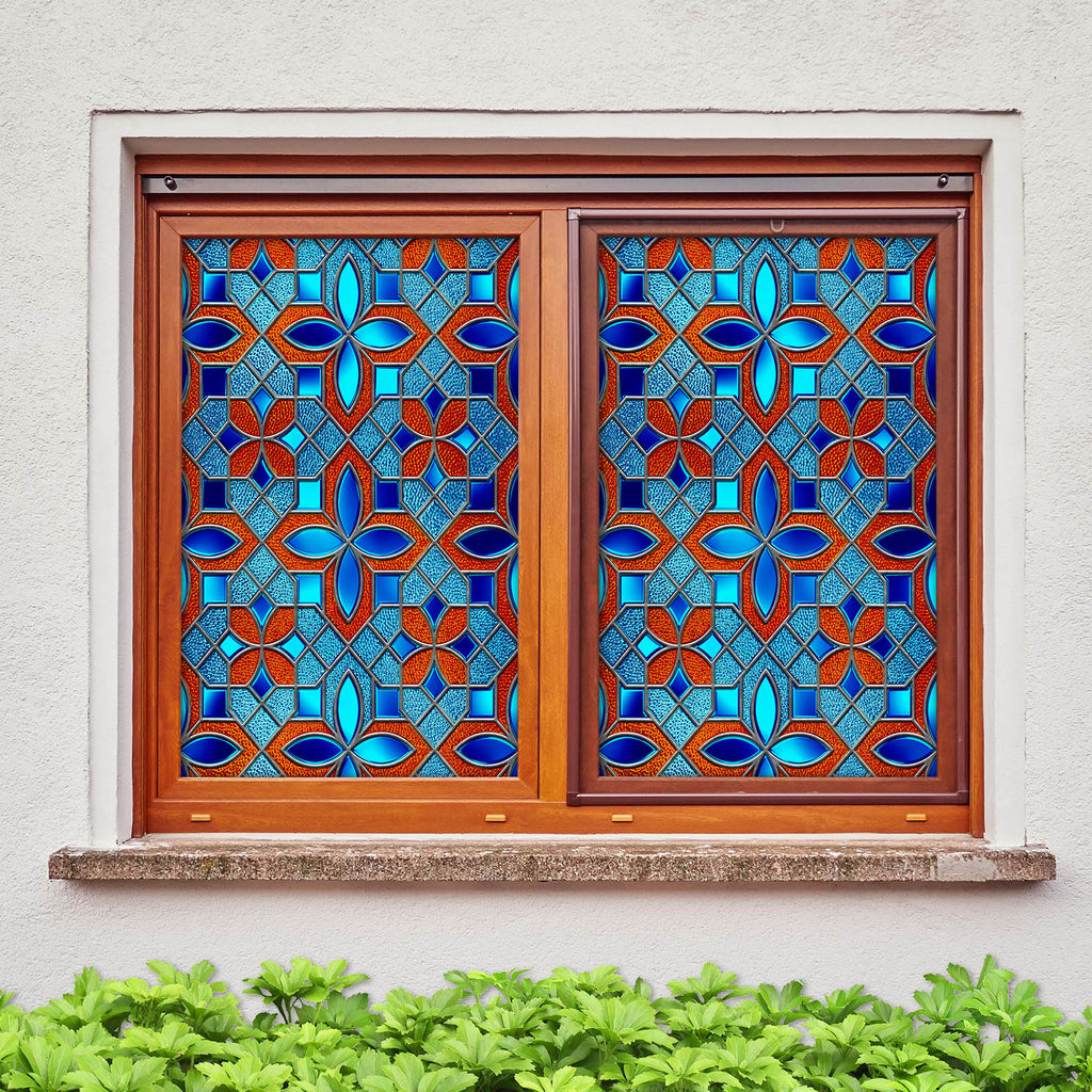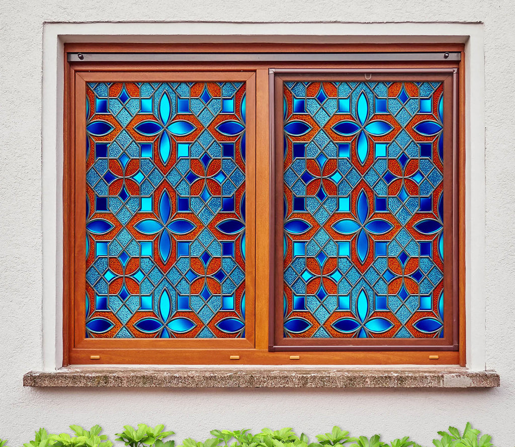 3D Blue Lace 201 Window Film Print Sticker Cling Stained Glass UV Block