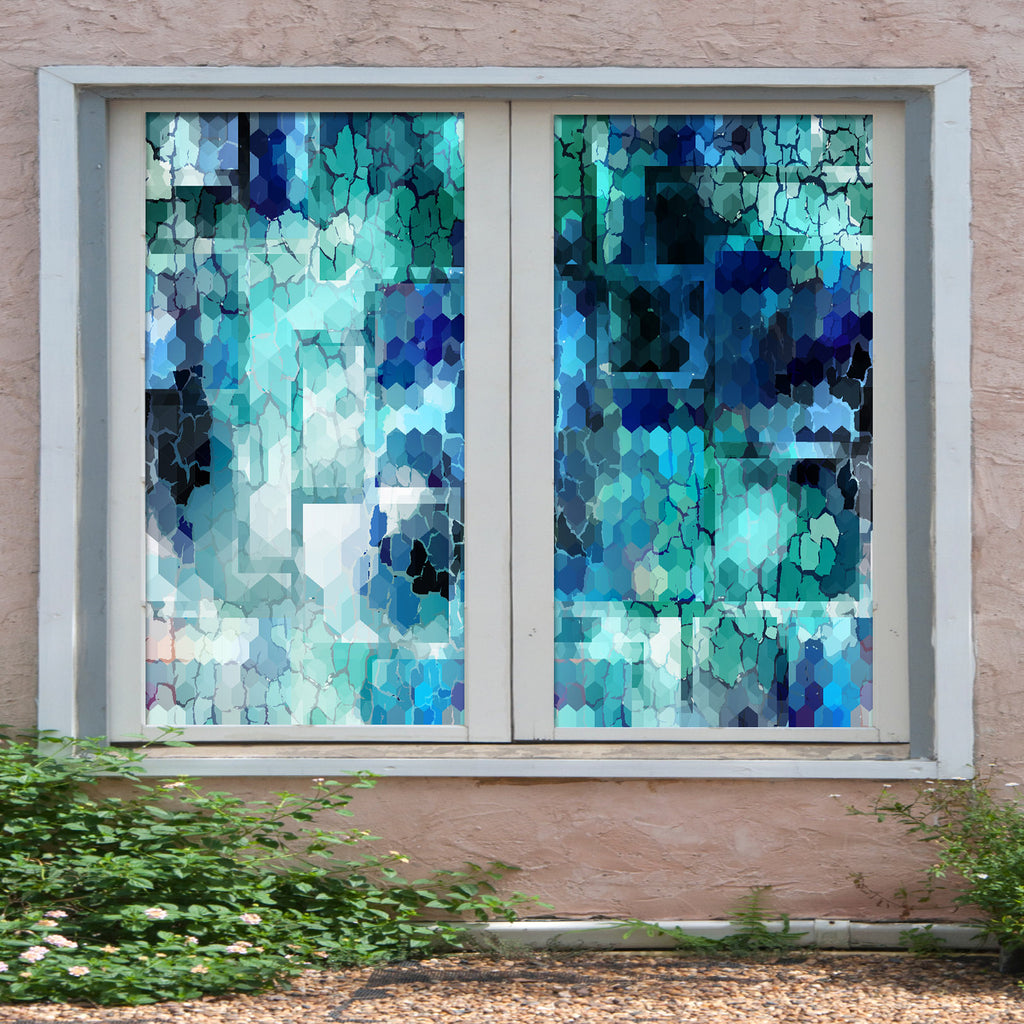 3D Blue Mosaic Graphic 345 Window Film Print Sticker Cling Stained Glass UV Block
