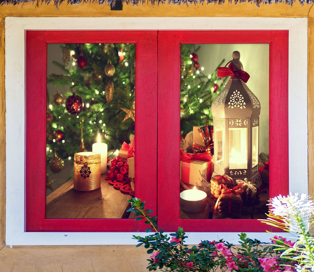 3D Candle Gift 42171 Christmas Window Film Print Sticker Cling Stained Glass Xmas