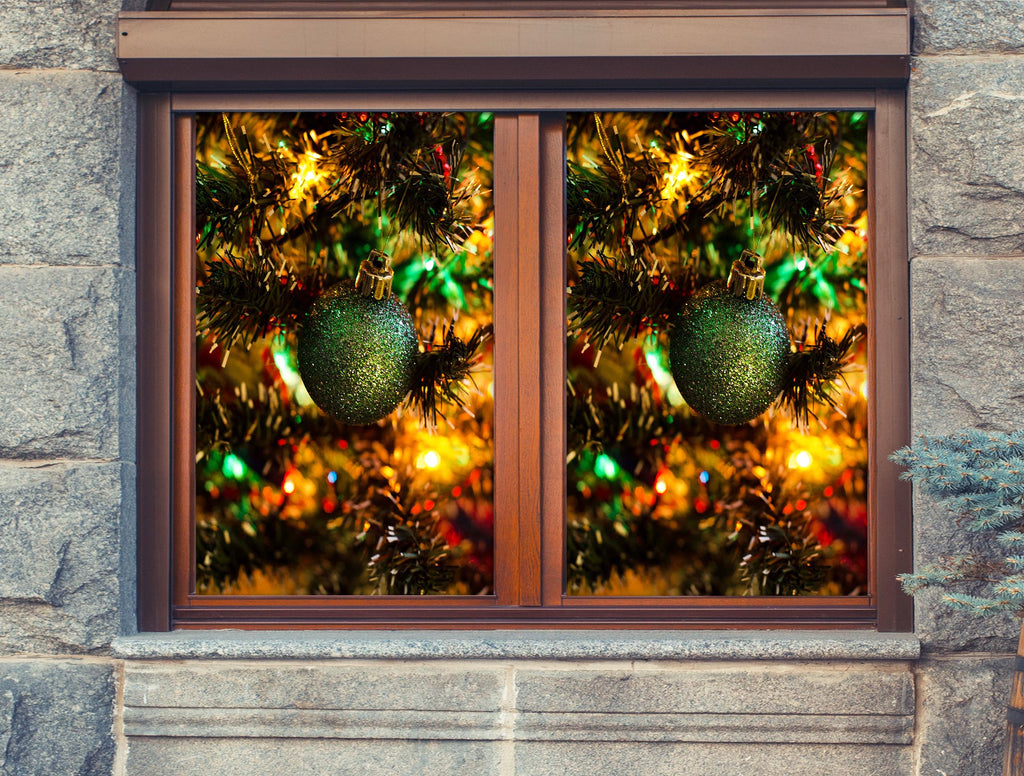3D Christmas Tree Pendant 42151 Christmas Window Film Print Sticker Cling Stained Glass Xmas Sinsin