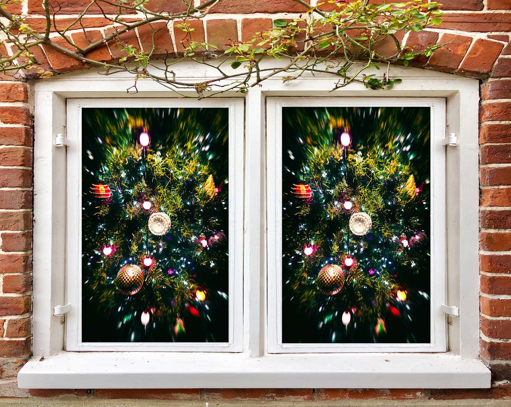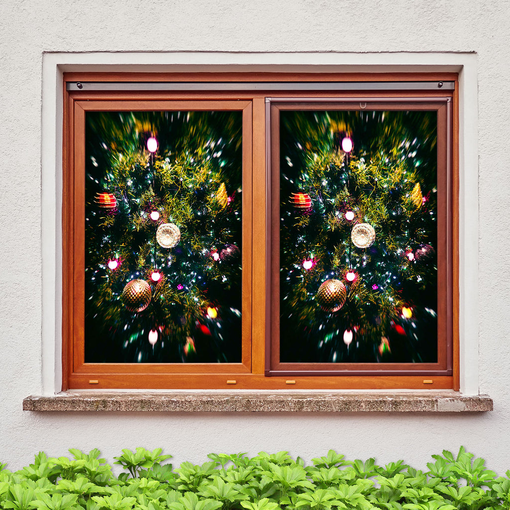 3D Christmas Tree Pendant 42152 Christmas Window Film Print Sticker Cling Stained Glass Xmas