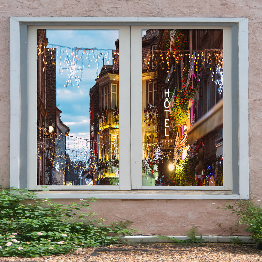 3D City Houses 42192 Christmas Window Film Print Sticker Cling Stained Glass Xmas