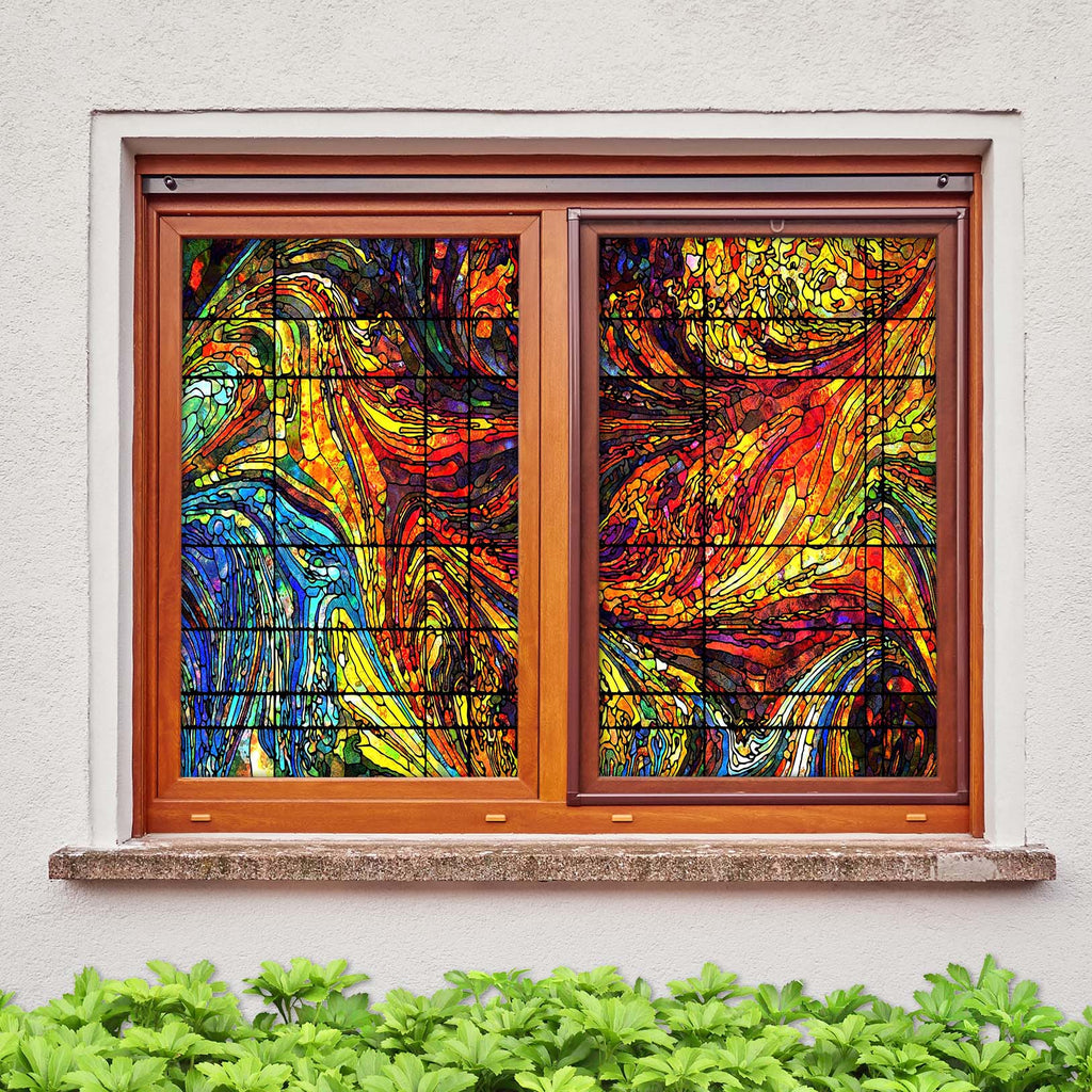 3D Curved Abstract 036 Window Film Print Sticker Cling Stained Glass UV Block