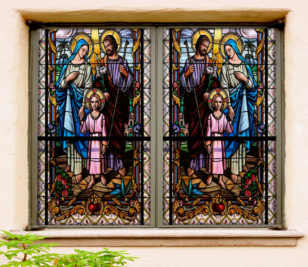 3D Family Girlr 057 Window Film Print Sticker Cling Stained Glass UV Block