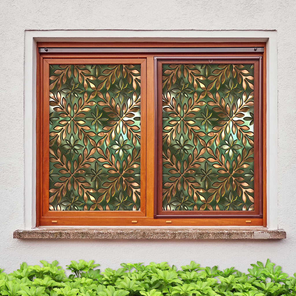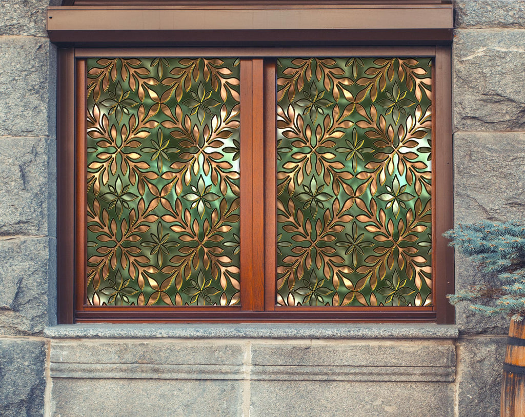 3D Golden Leaves 433 Window Film Print Sticker Cling Stained Glass UV Block