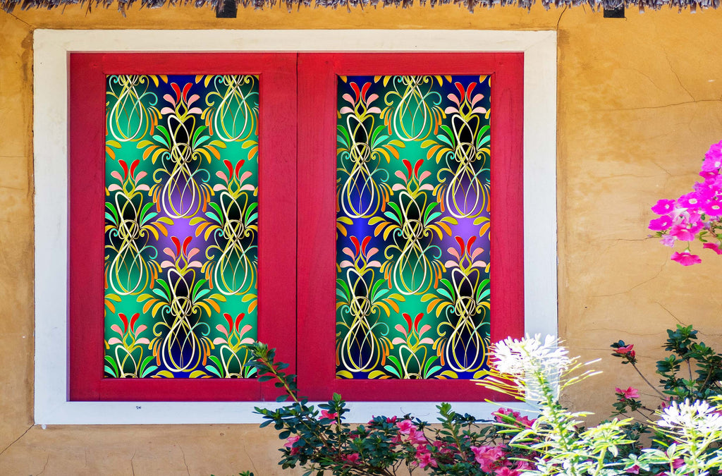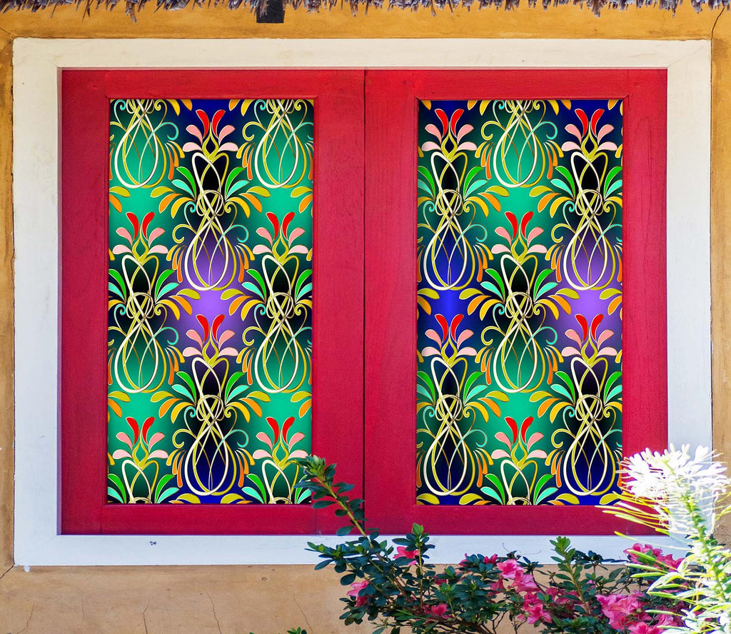 3D Green Flower Pattern 439 Window Film Print Sticker Cling Stained Glass UV Block