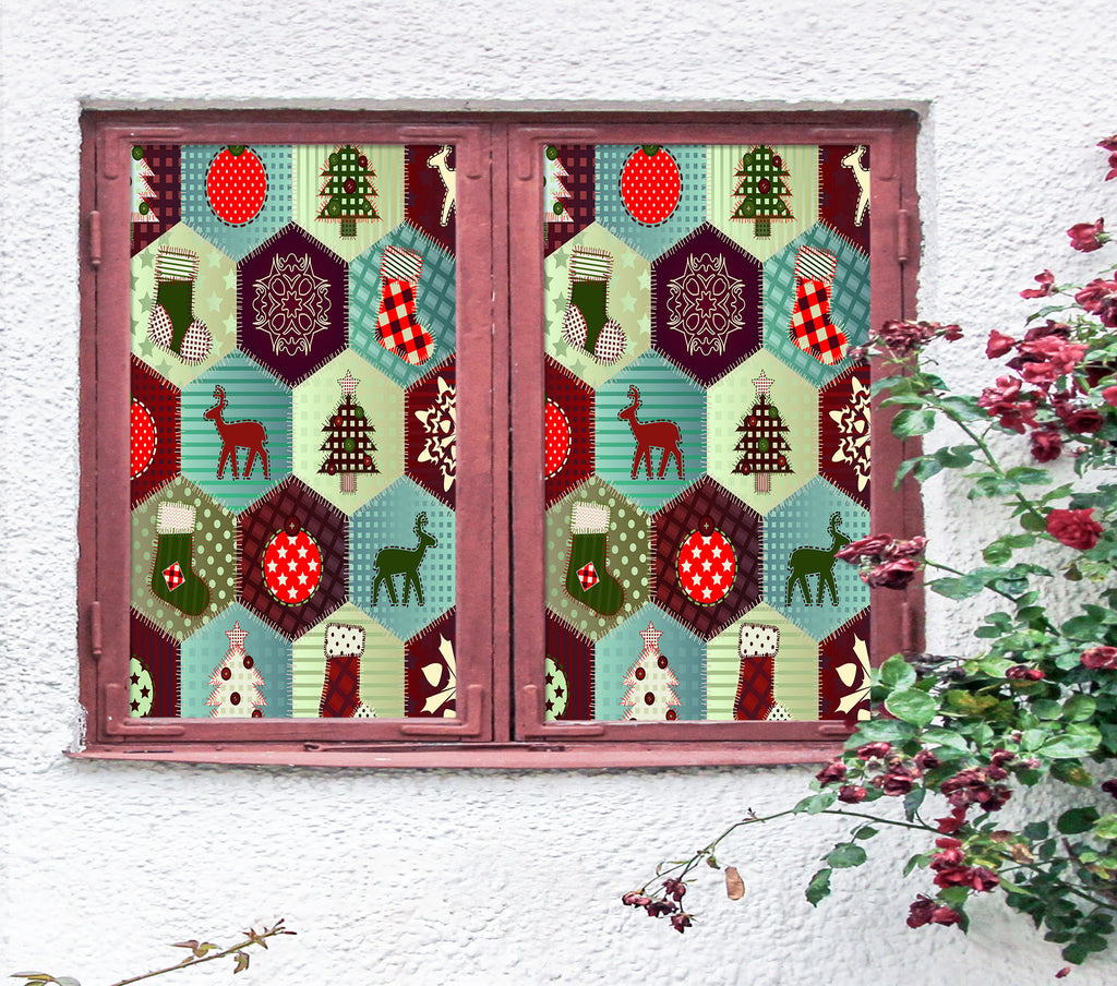 3D Hexagon Christmas Pattern 42193 Christmas Window Film Print Sticker Cling Stained Glass Xmas