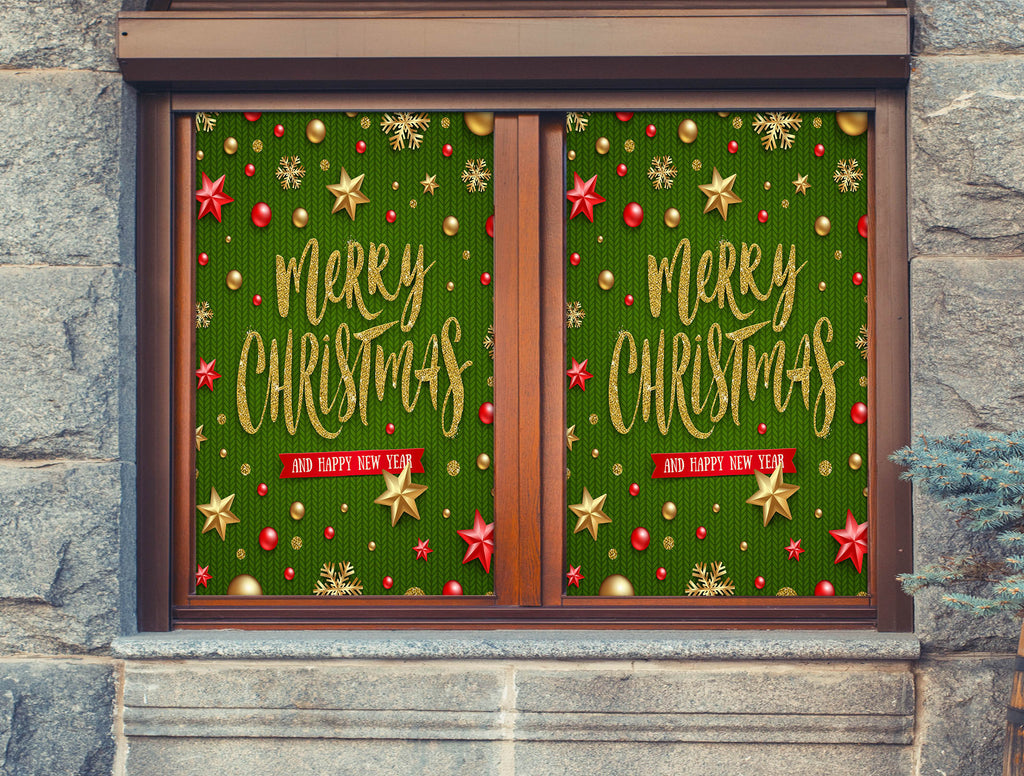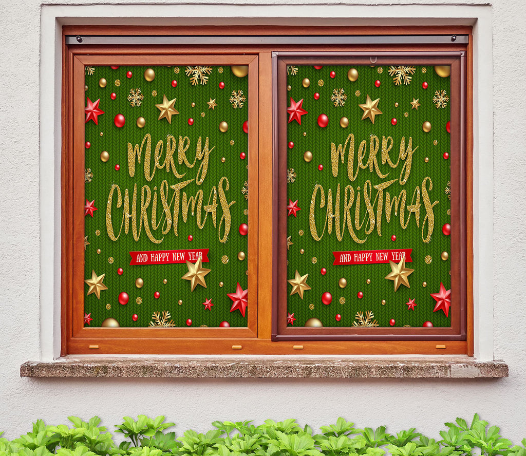 3D Merry Christmas 43121 Christmas Window Film Print Sticker Cling Stained Glass Xmas