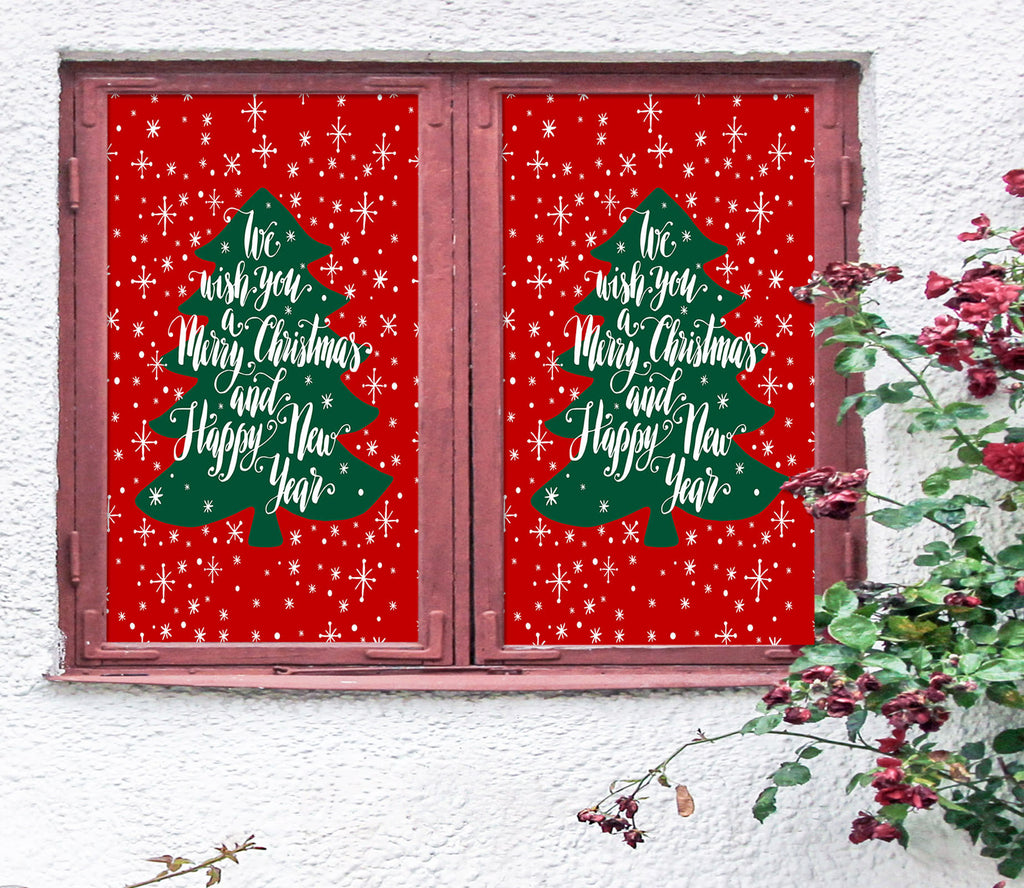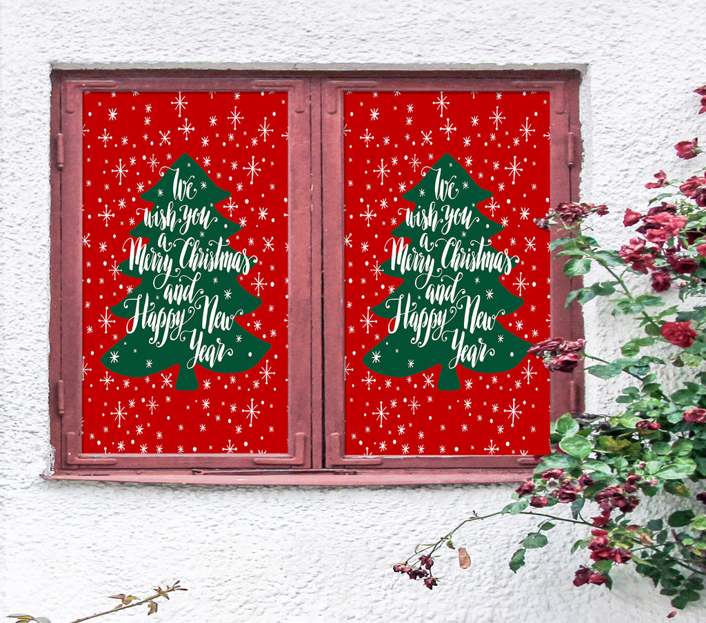 3D Merry Christmas Tree 43122 Christmas Window Film Print Sticker Cling Stained Glass Xmas Sinsin