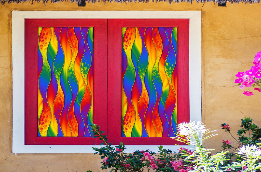 3D Red Vertical Wave 195 Window Film Print Sticker Cling Stained Glass UV Block