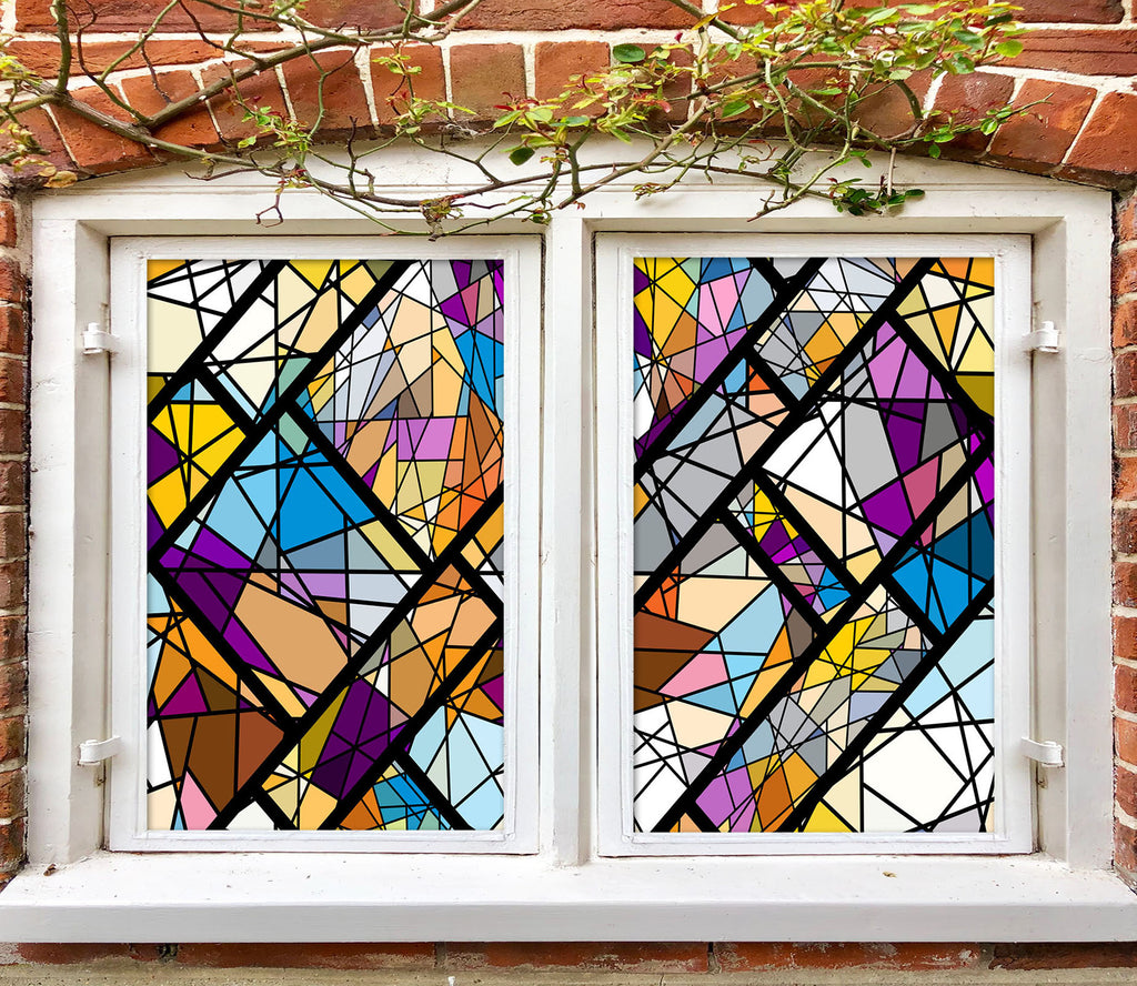 3D Stained Mosaic Pattern 329 Window Film Print Sticker Cling Stained Glass UV Block