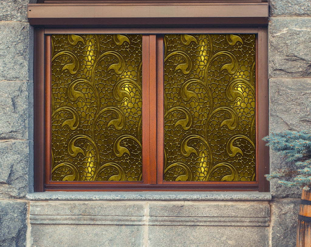 3D Yellow Leaves 198 Window Film Print Sticker Cling Stained Glass UV Block