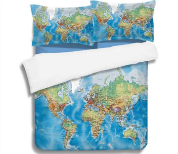 3D Bright Sky World Map 140 Bed Pillowcases Quilt