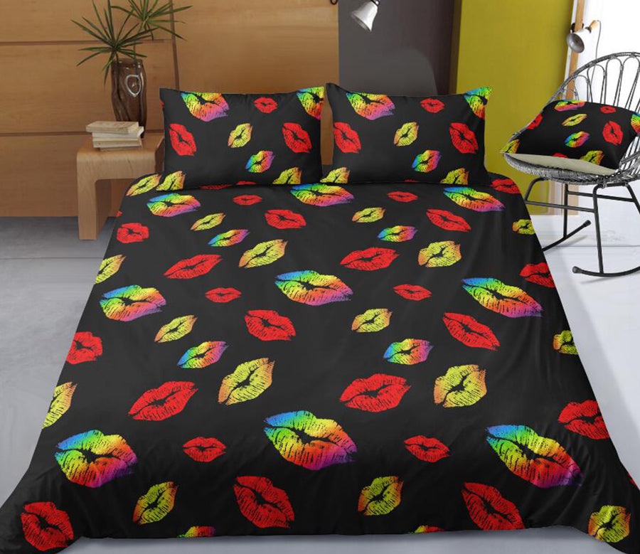 3D Black Background Color Lip 6096 Bed Pillowcases Quilt Sinsin