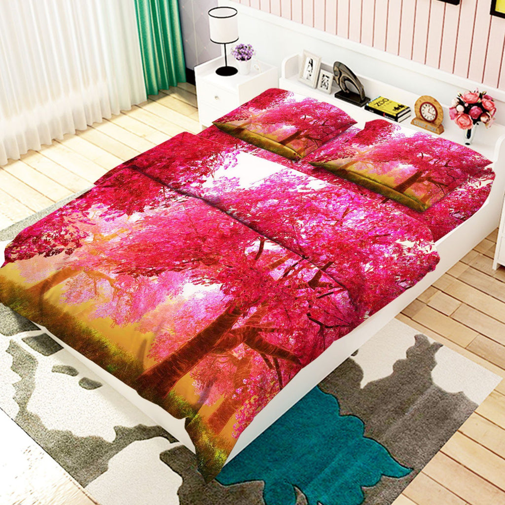 3D Pretty Maple Trees 96 Bed Pillowcases Quilt