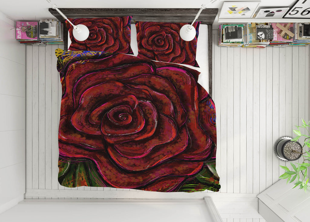Introducing our luxurious red rose bedding set, the perfect addition to elevate the aesthetic of any bedroom. Our bedding set is made with high-quality materials, ensuring both comfort and durability. The beautiful red rose design is eye-catching and perfect for those looking to add a touch of elegance to their bedroom. Our bedding set is available in various sizes to ensure a perfect fit for any bed. Our product is easy to care for and can be machine-washed without fading or shrinking. Transform your bedroom into a luxurious haven with our red rose bedding set. Shop now and experience the ultimate in comfort and style.