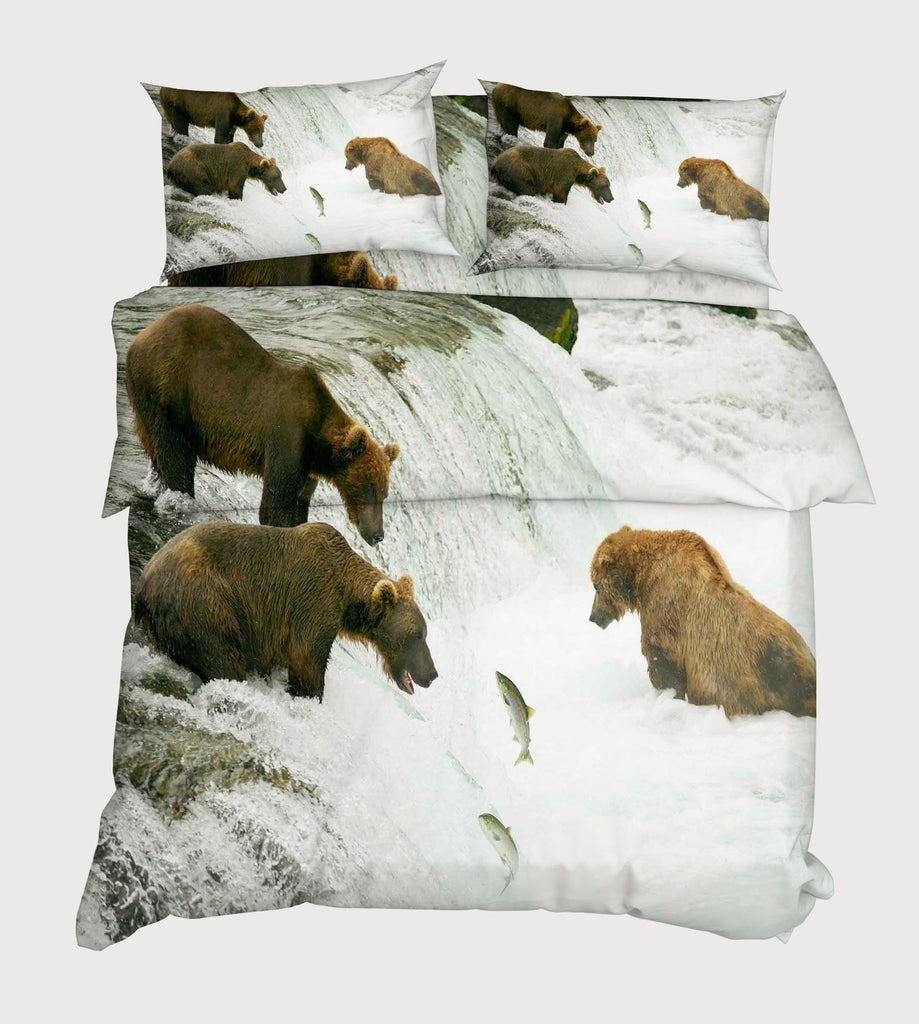 3D River Bears 118 Bed Pillowcases Quilt