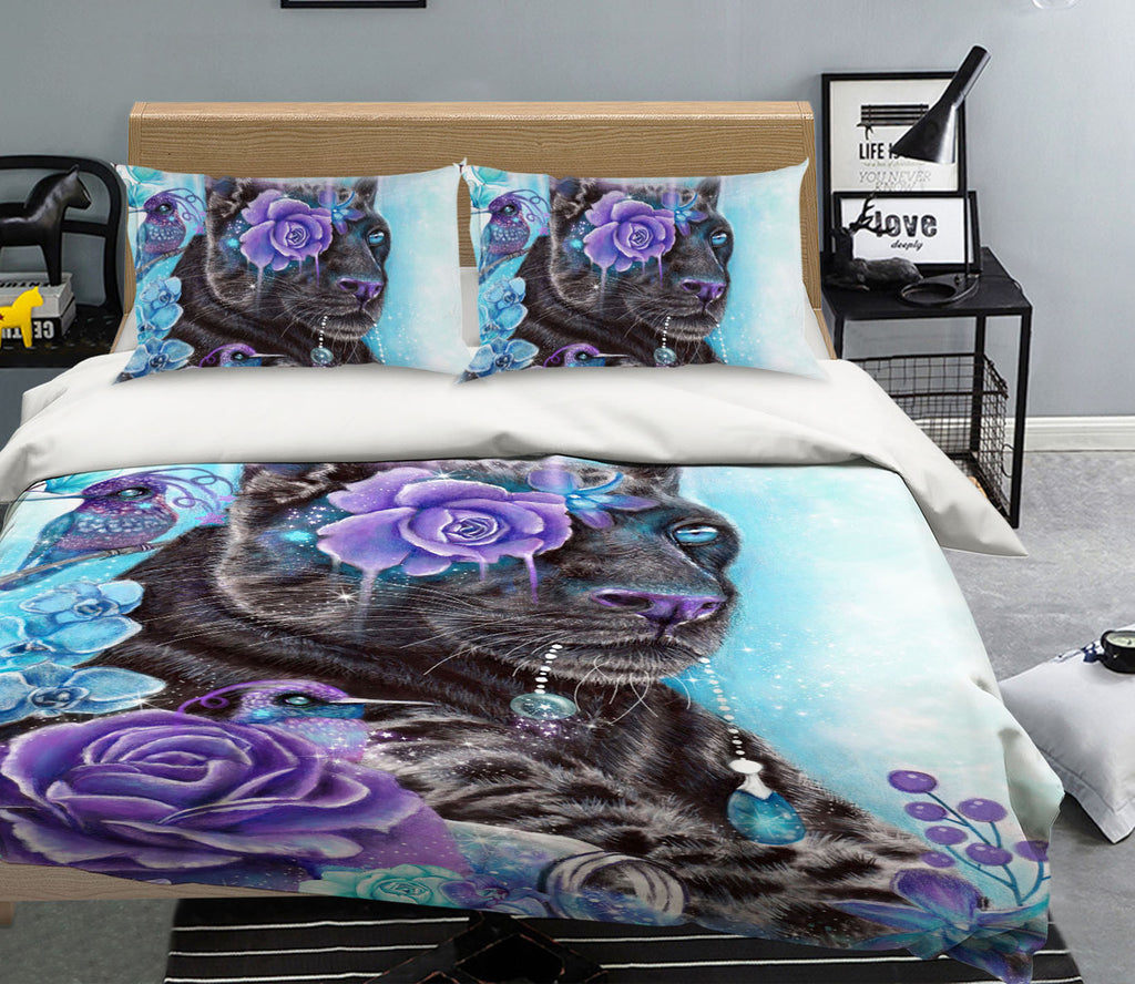 3D Black Panther Purple Rose 8604 Sheena Pike Bedding Bed Pillowcases Quilt Cover Duvet Cover