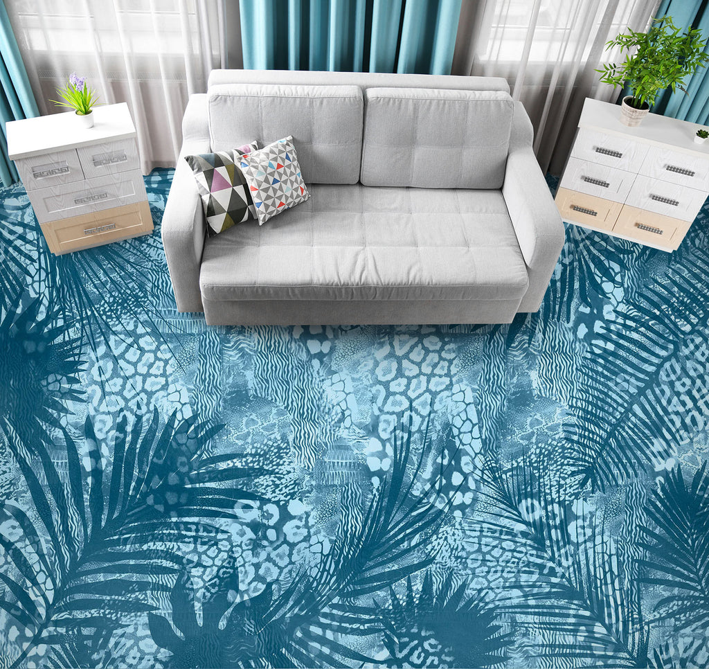 3D Blue Leaves Pattern 102118 Andrea Haase Floor Mural Sinsin