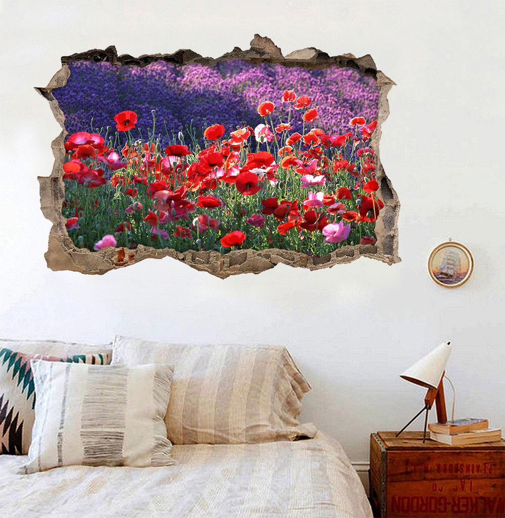 3D Bright Flowers 393 Broken Wall Murals