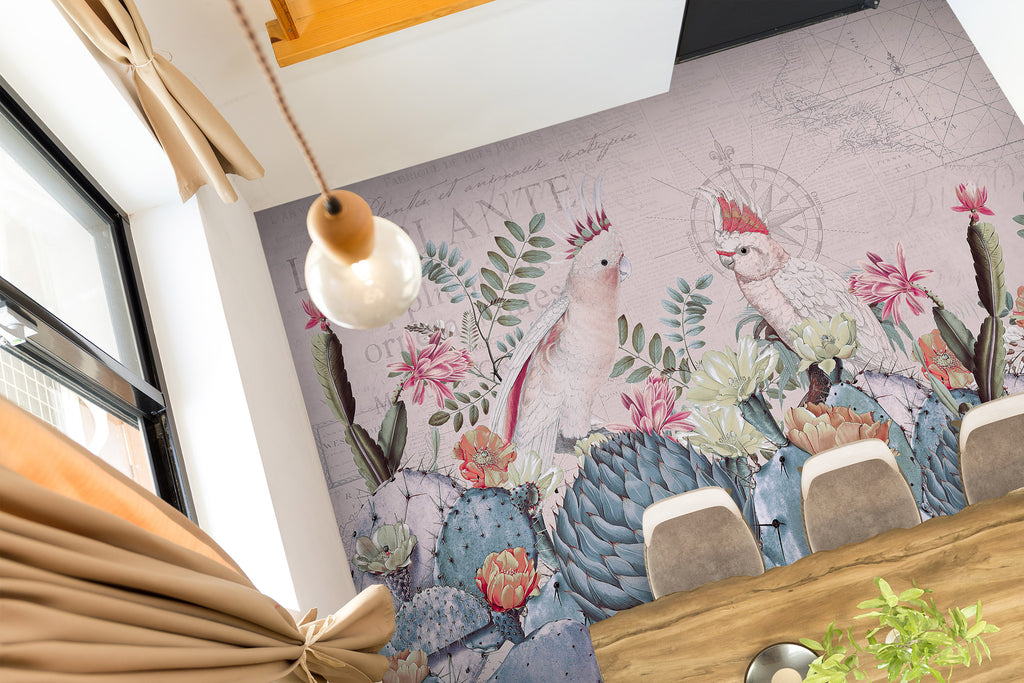3D Cactus Flower Bush Parrot 104141 Andrea Haase Floor Mural Sinsin