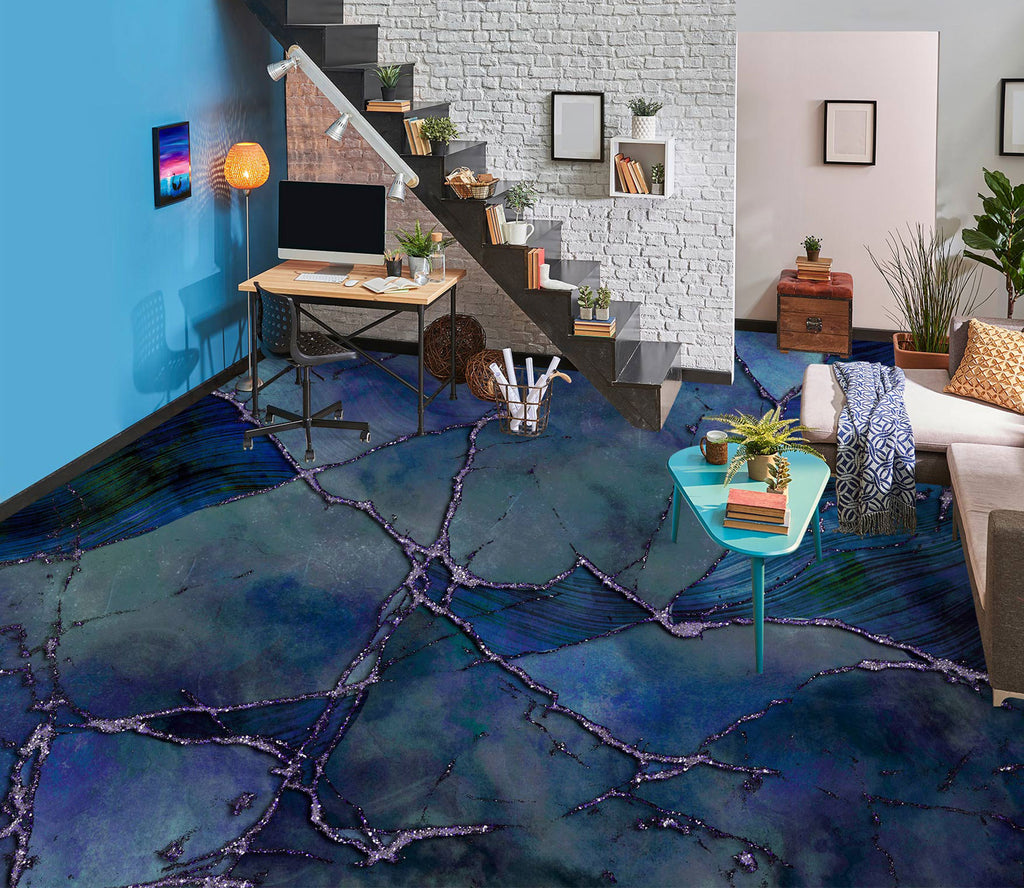 3D Dark Blue Pattern Crack 102140 Andrea Haase Floor Mural Sinsin