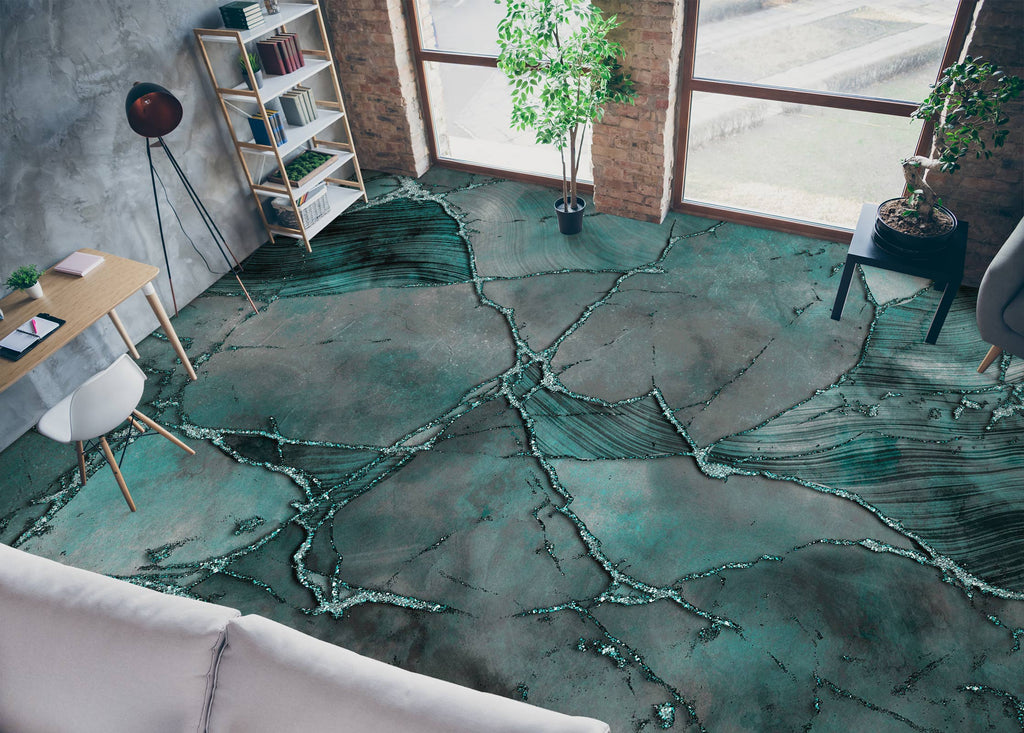 3D Green Pattern Crack 102143 Andrea Haase Floor Mural Sinsin